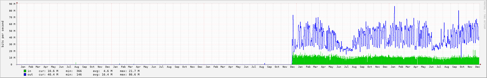 RRDTOOL TenGigE0/0/0/34.507 - Core: Rakvere , maximum bandwidth: 10 000 000 000 bps permalink