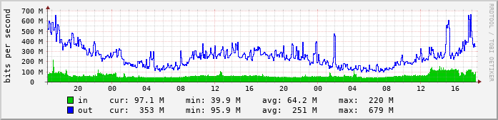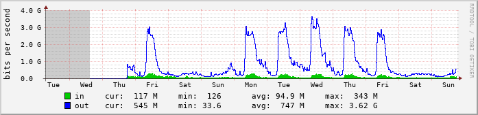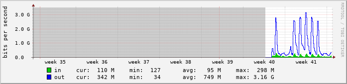 RRDTOOL TenGigE0/0/0/34 - EENeti kliendid RVst TLN #1 , maximum bandwidth: 10 000 000 000 bps permalink