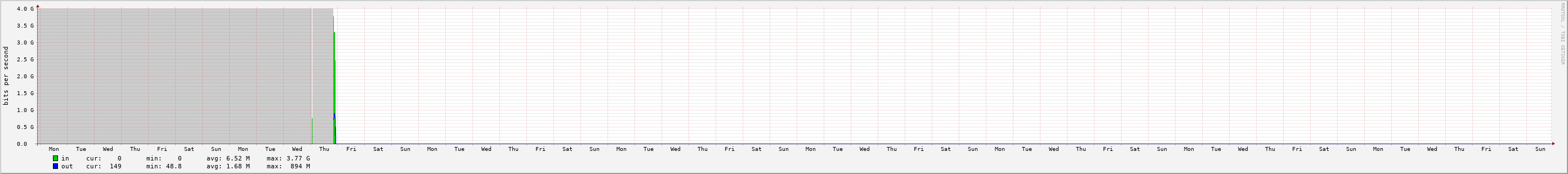 RRDTOOL TwentyFiveGigE0/0/0/46.3226 - , maximum bandwidth: 25 000 000 000 bps permalink