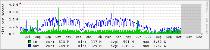 RRDTOOL BVI1 - Cust: Tartu Ülikool , maximum bandwidth: 10 000 000 000 bps permalink