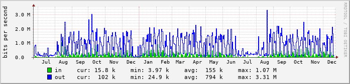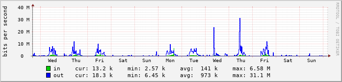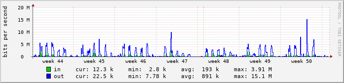 RRDTOOL Bundle-Ether11.848 - Cust: Hariduse Tugiteenuste Keskus , maximum bandwidth: 20 000 000 000 bps permalink